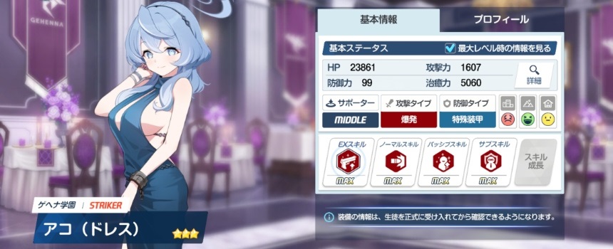 石の使いどころは★3生徒の排出率2倍の3周年ガチャの時期だと思うが、余裕があれば引くのをオススメできる生徒ではある。