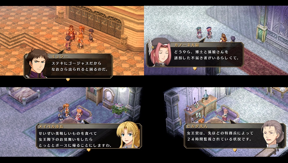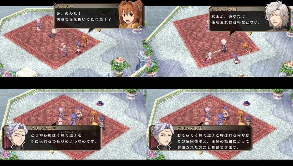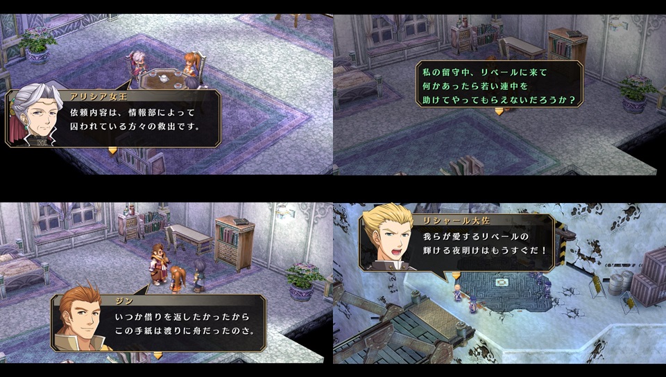 リシャールは、クローディア姫らを人質にして女王に退位を要求。人質がいるエルベ離宮に向かう前に戦力集めとしてクルツ、アネラス、カルナ、グラッツの遊撃士4名に声を掛けに行きます。