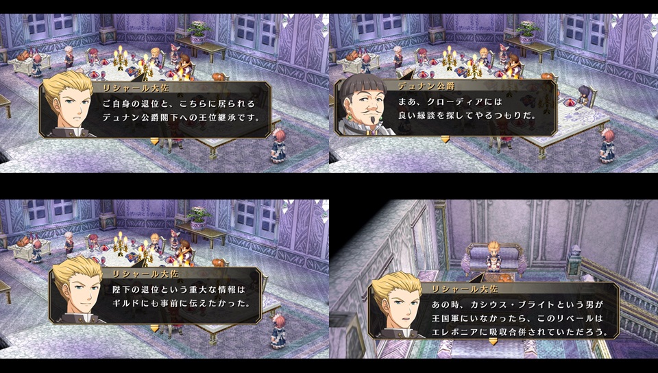 晩餐会では女王が自身の退位とデュナン公爵への王位継承を決意したという驚きの発表が。公爵と同位の王位継承権を持つ孫のクローディアには縁談を探すという。しかしこの発表はリシャールが実権を握るための陰謀である。晩餐会後リシャールと会い、カシウスに軍で公私とも世話になったという話を聞く。