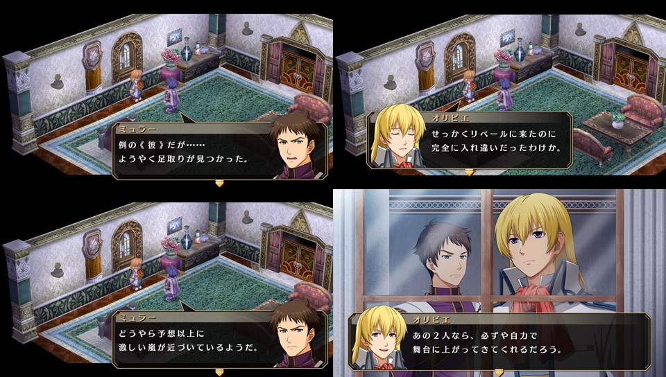 一方王都の帝国大使館にはオリビエとミュラー。カシウスは現在帝国にいると知り、リベールにいる意味がなくなったオリビエだが、このまま帰るつもりはなさそうです。