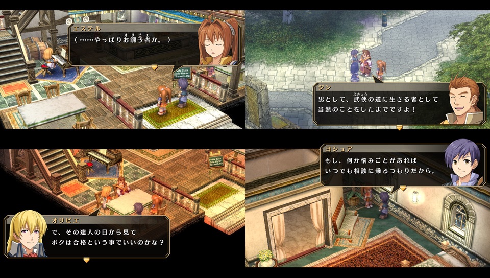 ジンを探して居酒屋に向かうと、そこにはオリビエが。ロレントではアイナとシェラザードのお酒に付き合って大変な目にあったようです。その後、修行のためにエルベ周遊道へ行っていたジンと無事再会。エステル、ヨシュア、ジンにさらにオリビエを加えた4人で武術大会に参加する。